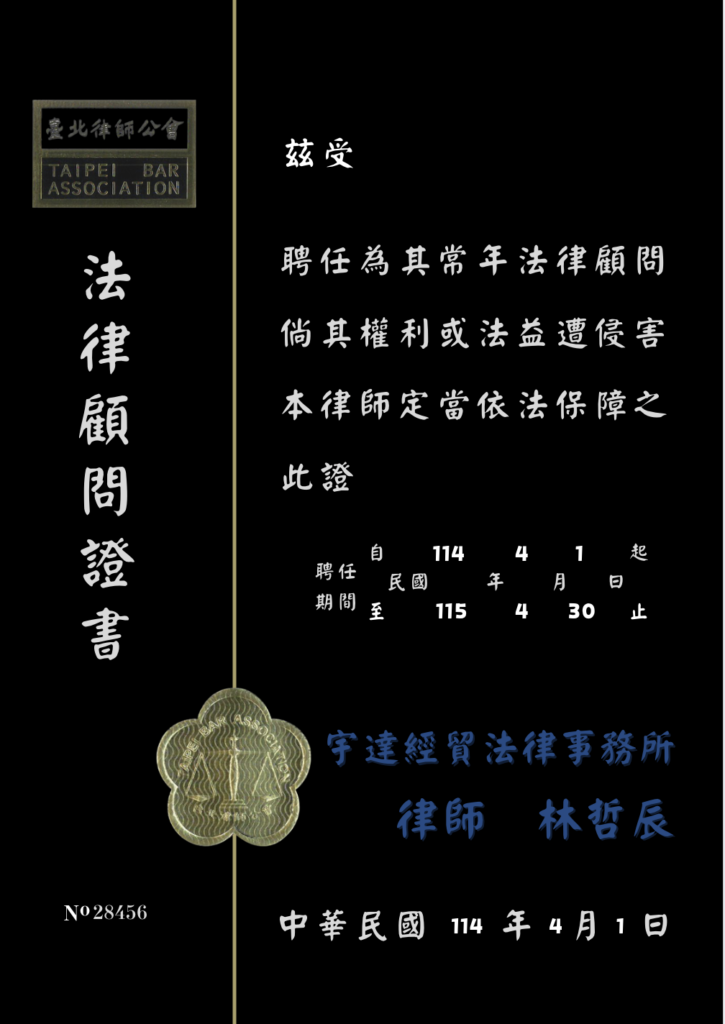- 使用者同意使用本服務之一切行為符合中華民國相關法令規範;對於使用者的一切行為,使用者須自行負擔全部責任。